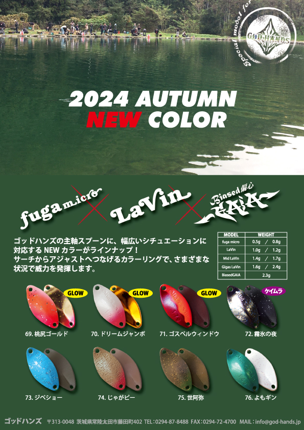 ゴッドハンズの中核となっている、LaVin、fuga micro、偏心GAiA に新色がラインナップ。